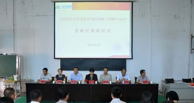 2015年8月28日,由眾興菌業時任董事長陶軍發起成立的“天水眾興愛心慈善基金會”,在天水市二中舉行了“助學圓夢工程01號項目”首批資助款336000元的發放儀式。